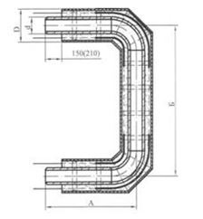 -П-образный элемент с наружным диаметром 426 мм, толщиной стенки 7 мм, углами 90°, с изоляцией из пенополиуретана в оцинкованной оболочке П-образный элемент Ст 426х7-90-ППУ-ОЦ Примечание.